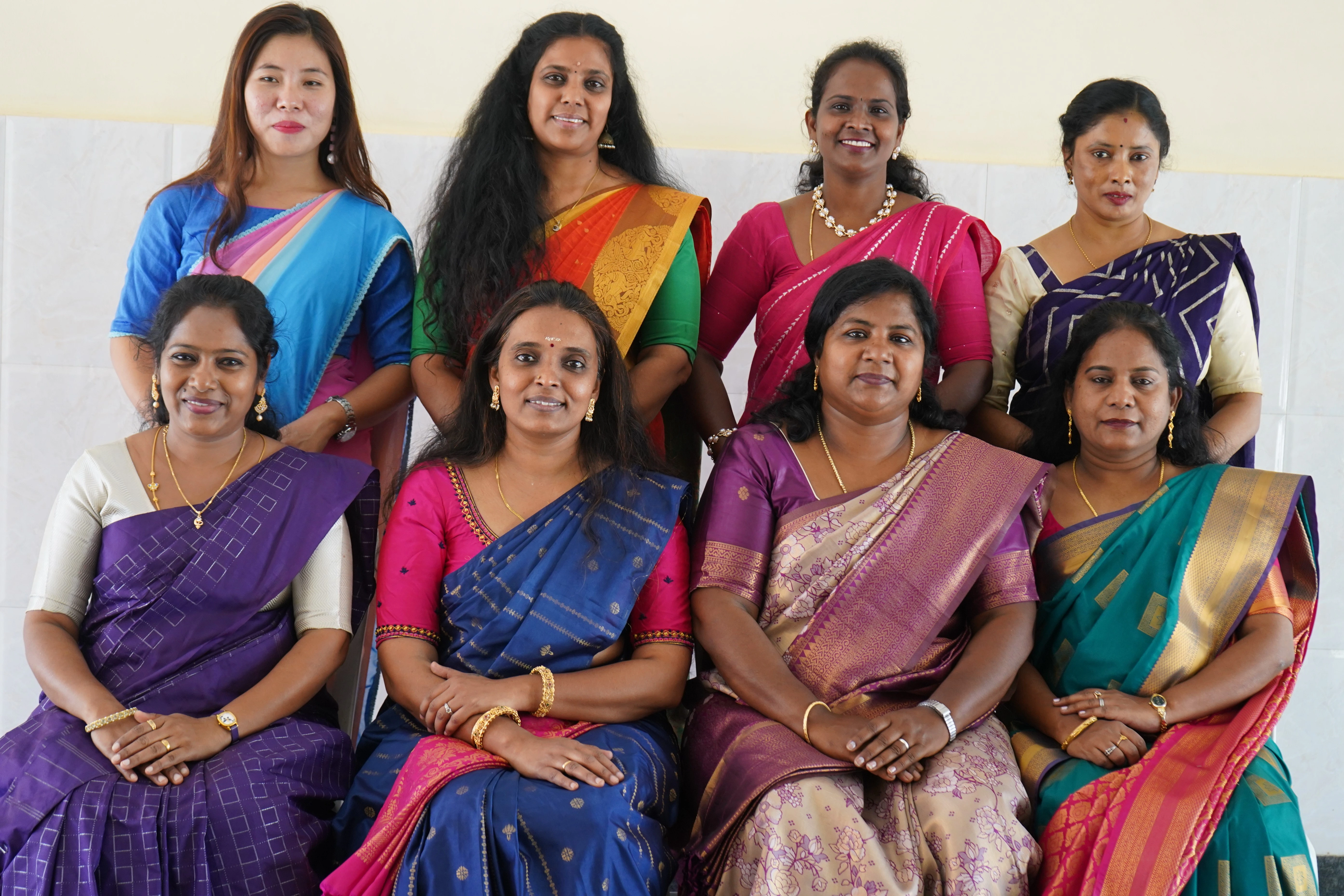 Seated Left – Right: Mrs. Gracy Beula, Mrs. Kavitha T P, Mrs. Aparanji P, Mrs. Nesamani E Standing Left – Right: Ms. Jenny, Mrs. Sunitha S, Mrs. Baby Shalini, Mrs. Camila Ann.