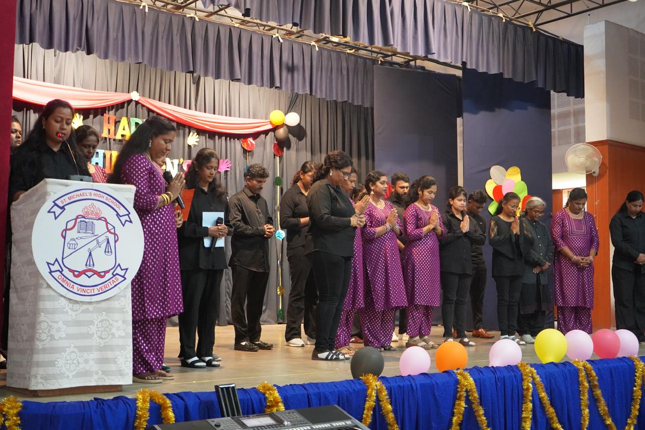 St. Michael’s CMI High School, Kothanur, Bengaluru, came alive with joy and festivity as the community gathered to honor the spirit of childhood on Children’s Day. The campus was filled with excitement as students arrived in their finest attire, their faces glowing with happiness. To make the day even more special, each child received a personalized card highlighting their uniqueness before heading to their classrooms. Soon after, the primary students and teachers moved to the auditorium to begin the much-awaited program.