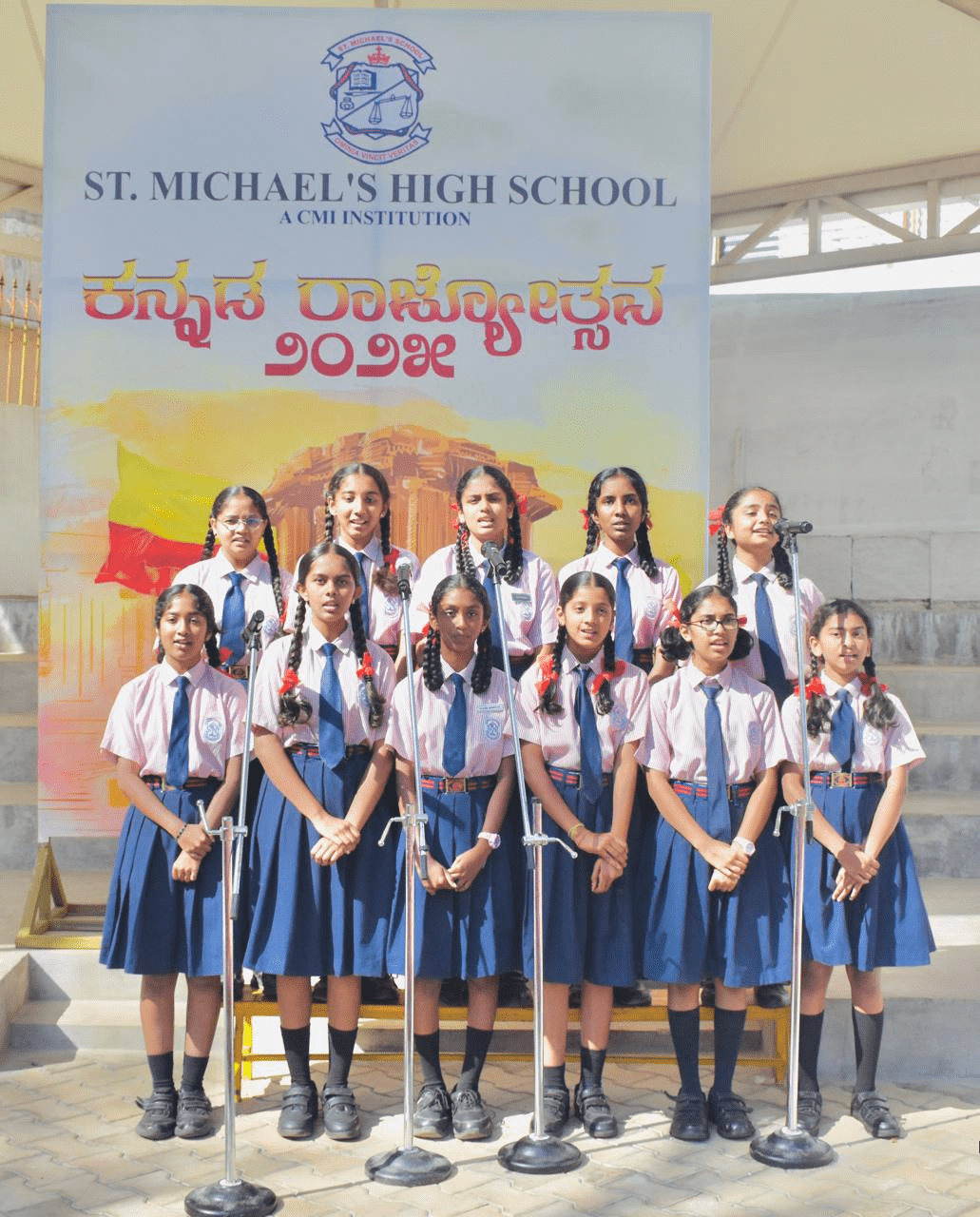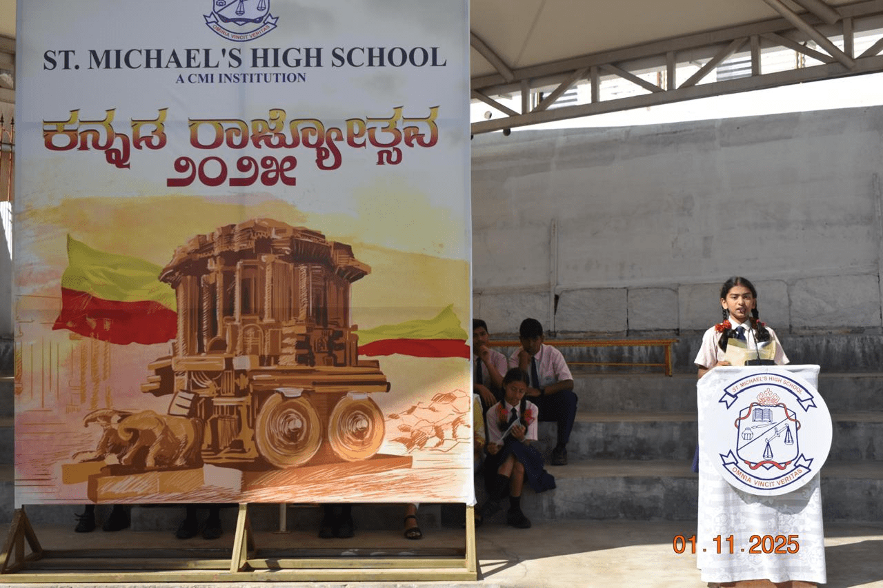 St. Michael’s High School, Kothanur, Bengaluru, vibrantly celebrated Kannada Rajyotsava, bringing together students, staff and management to honor and celebrate the rich heritage, language and culture of Karnataka. There was a sense of pride and unity among all present in the school premises.