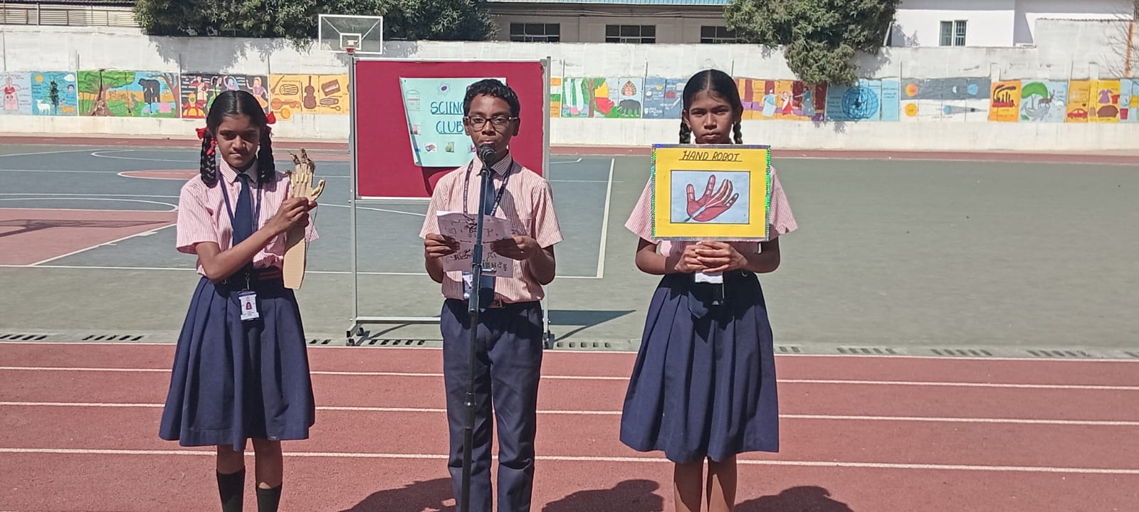 Science Club fascinated the audience with innovative models, including a robotic hand, a sundial (demonstrating how time was measured in ancient days), an electric circuit, and a respiratory system model.