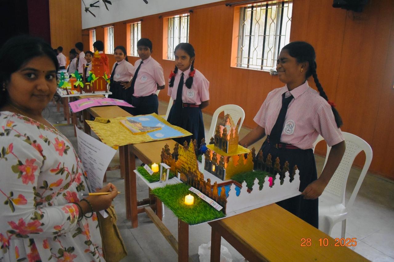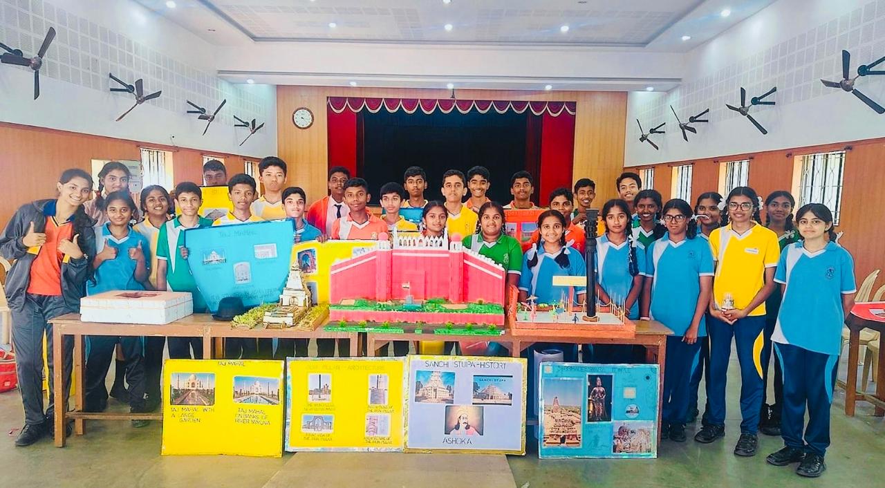 Students of Grades VI to IX displayed impressive exhibits on “Historical Monuments of India.” Their charts and models featured iconic monuments such as the Taj Mahal, Red Fort, Qutub Minar, and Hampi, highlighting India’s rich cultural heritage.
