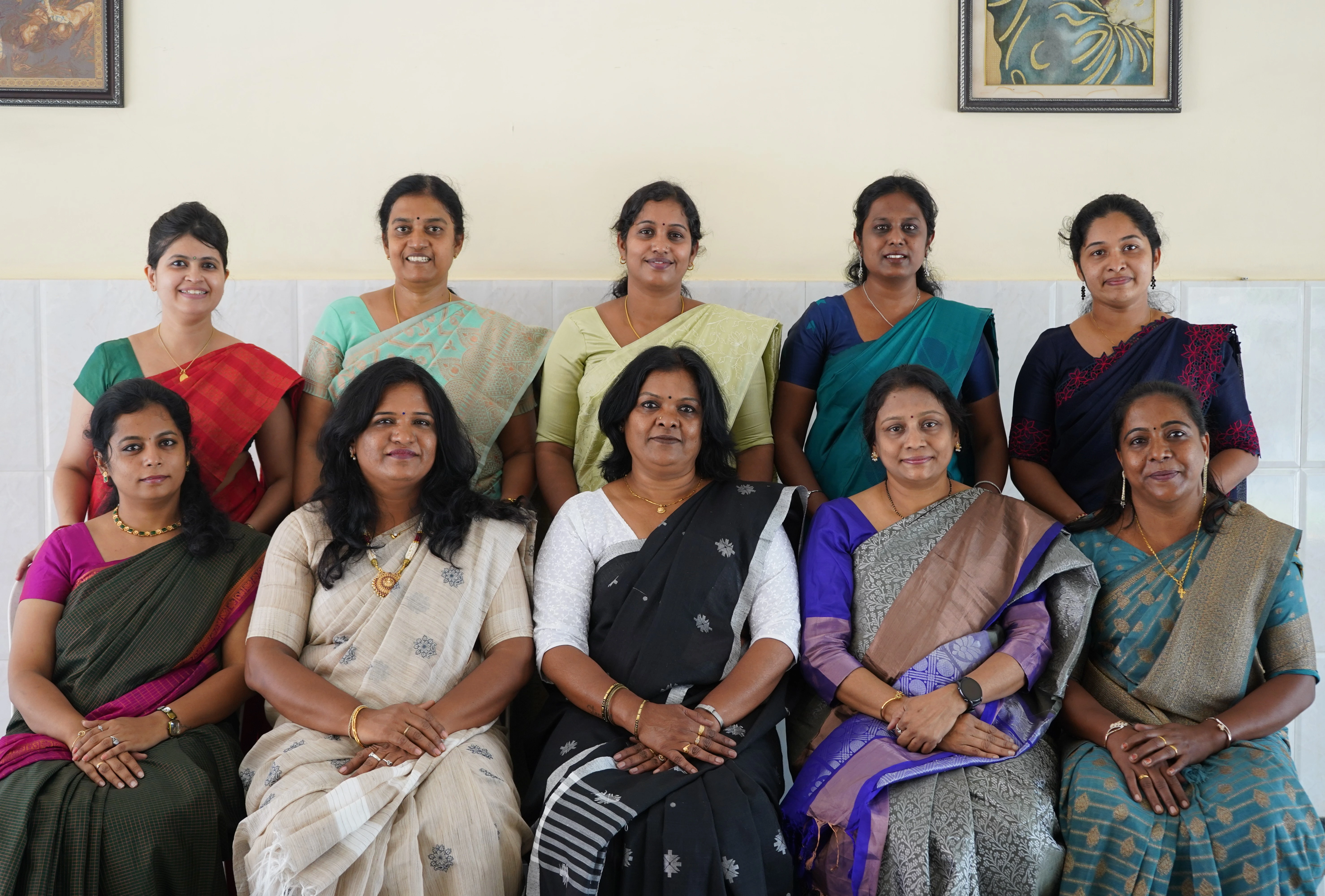 Seated Left – Right: Mrs. Gracy Beula, Mrs. Kavitha T P, Mrs. Aparanji P, Mrs. Nesamani E Standing Left – Right: Ms. Jenny, Mrs. Sunitha S, Mrs. Baby Shalini, Mrs. Camila Ann.