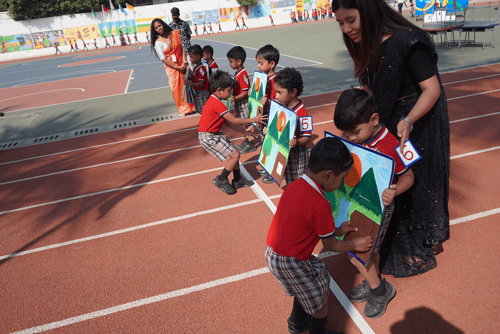 Day 1 was dedicated to our little ones of KG section and Std 1. The youngest stars of our school kicked off the celebrations with enthusiasm and energy. The day was filled with playful yet competitive activities like dressing up Chotta Bheem, unwrapping my gift, passing the kite and so on. The parents cheered on as the little ones crossed the finish line with smiles on their faces. The highlight of the day was the "Musical Display," which added a special touch of sports and music.