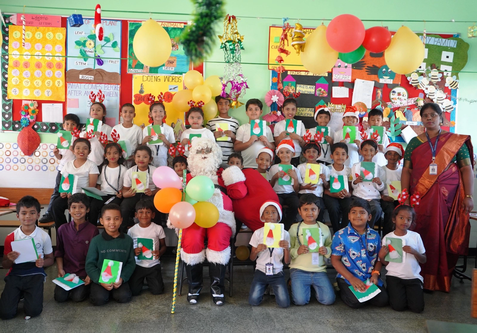 The entire school was adorned with colourful decorations, including a sparkling Christmas tree and twinkling lights, creating a magical atmosphere. Santa Claus made a special appearance, much to the delight of the children, distributing sweets and spreading joy.