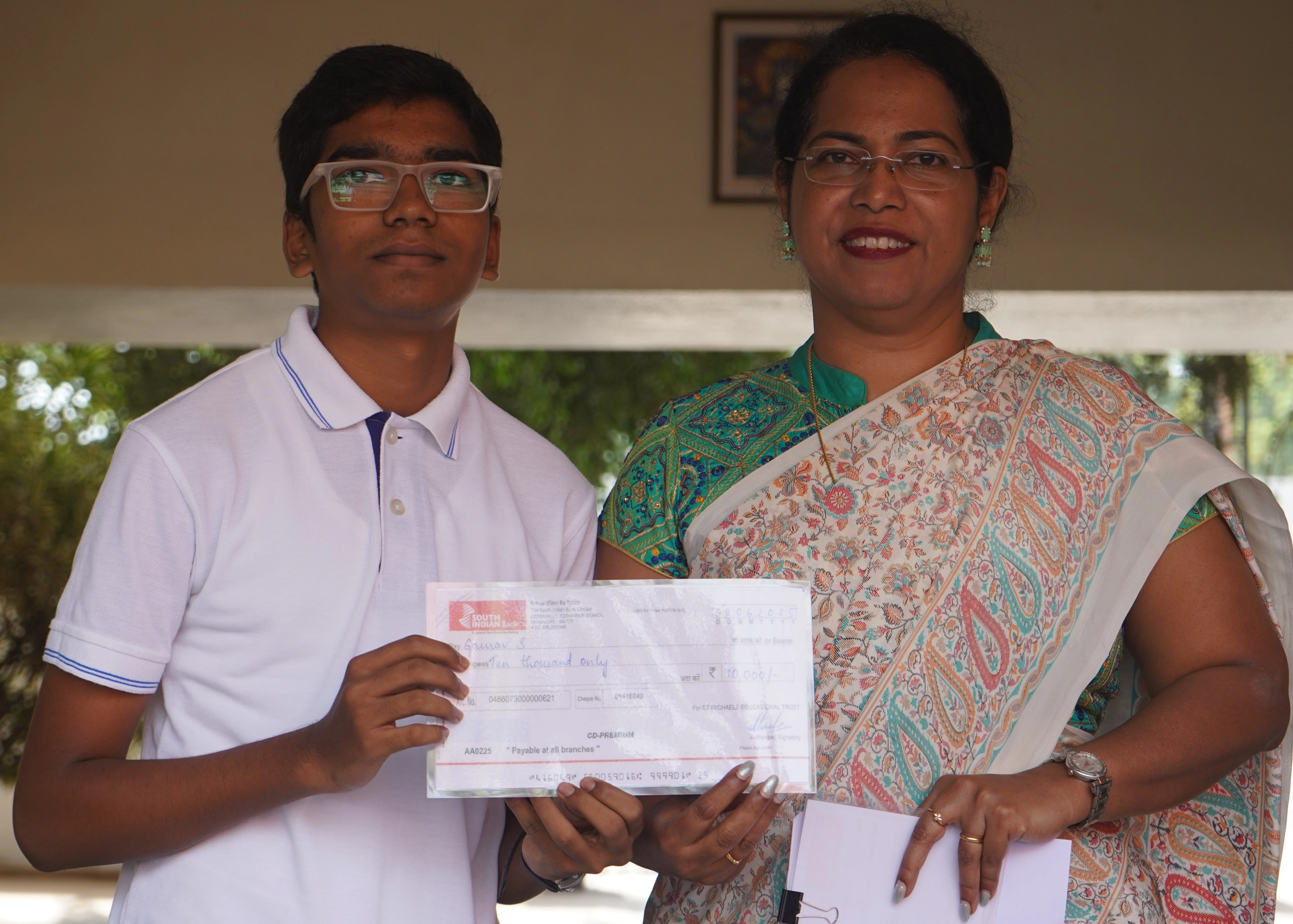 In a testament to their hard work and academic excellence, the toppers, Tanushree S - 98.4%, Jeet Bhavin Desai - 97.4%, Gaurav S - 96.4%, Bhavishya Ikkaluri - 96.2% and Joash Stanislaus Fernandez - 95.6%. were awarded scholarship cheques. The students shared some tips to our students and also spoke of their gratitude to their teachers and parents. We extend our heartfelt congratulations to all the scholarship recipients and encourage all our students to strive for excellence in every field of learning.