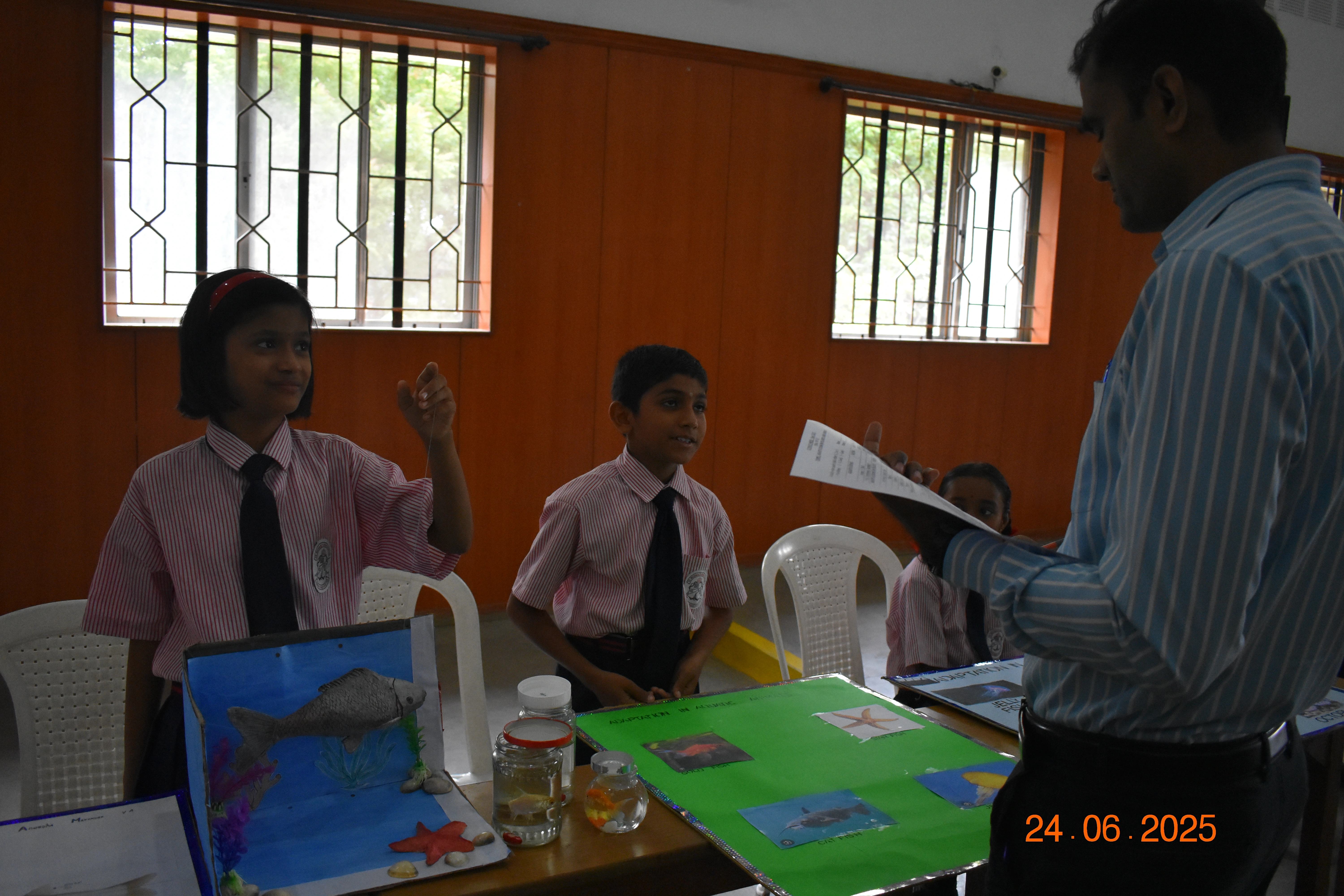 Parents were invited to view and independently evaluate each project. Their feedback and appreciation motivated the students to give their best. The top performers were awarded red and blue badges along with certificates of merit.