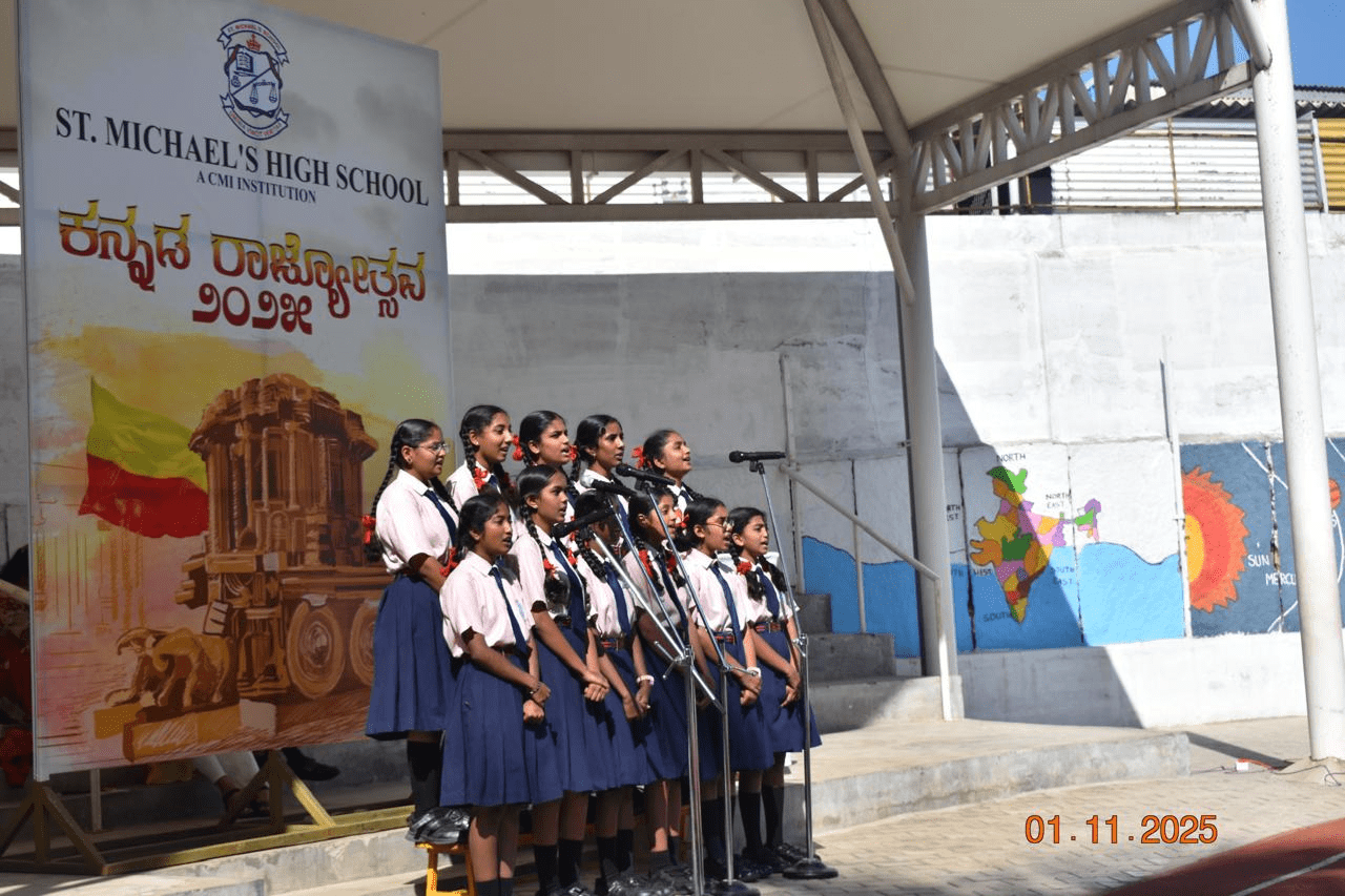 St. Michael’s High School, Kothanur, Bengaluru, vibrantly celebrated Kannada Rajyotsava, bringing together students, staff and management to honor and celebrate the rich heritage, language and culture of Karnataka. There was a sense of pride and unity among all present in the school premises.